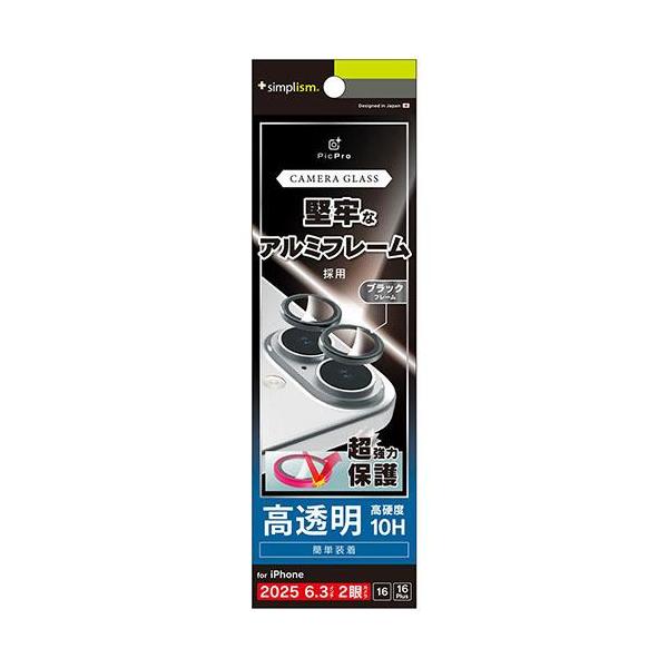 トリニティ iPhone17 / iPhone 16/16 Plus用 精密設計ケース専用 アルミフレーム 高透明 レンズ保護ガラス ブラック TR-IP25M2-LBLG-PCBK
