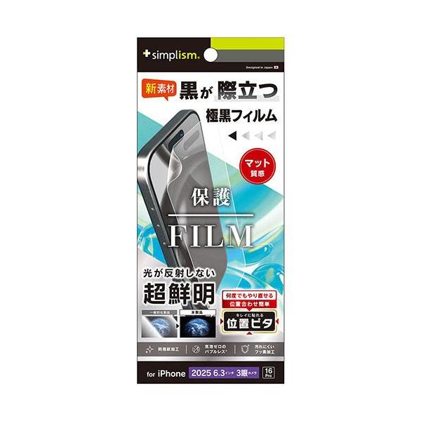 トリニティ iPhone17 Pro / iPhone 16 Pro用 極黒 超低反射 画面保護フィルム 反射防止 TR-IP25M3-PFI-3AAG