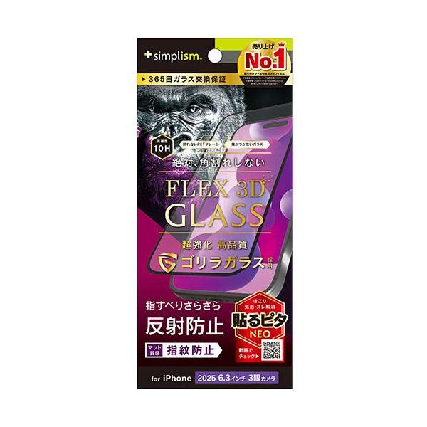 トリニティ iPhone17 Pro用 FLEX 3D ゴリラガラス 反射防止 複合フレームガラス ブラック TR-IP25M3-G3-GOAGBK