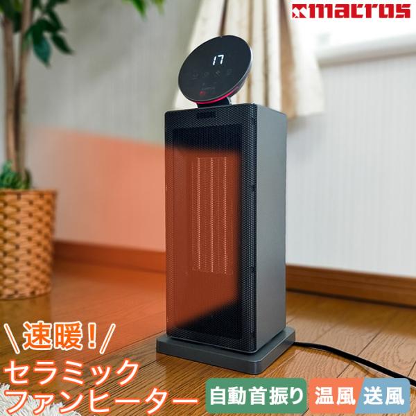 - 速暖 セラミック ファンヒーター 温風温度設定 17〜37℃ 左右自動首振り 強1200W 弱900W 適用面積目安 木造3畳〜6.5畳 コンクリート 4.5畳〜8畳 タッチパネル オフタイマー メモリー機能搭載 リモコン付き 縦型 スリム PTCヒーター MES-69 RECFER レクファー sumuu MACROS マクロス速暖性に優れたセラミックファンヒーター