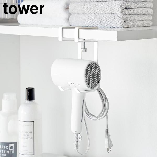 棚下ドライヤーハンガー タワー 山崎実業 tower ホワイト ブラック 1640 1641 ドライヤーホルダー ドライヤー ハンガー ホルダー yamazaki タワーシリーズ[MM1]