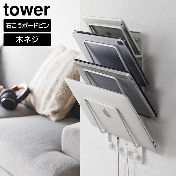 石こうボード壁対応ウォールタブレットホルダー タワー 4段 山崎実業 tower ホワイト ブラック