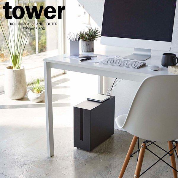 山崎実業 tower タワー キャスター付き ケーブル収納ラック ブラック 5404 | ケーブルボックス タップ収納 埃よけ ホコリよけ 隠す
