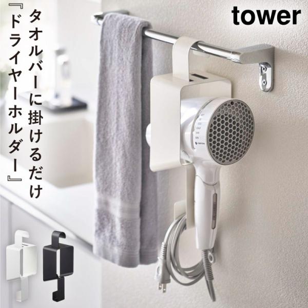 引っ掛けドライヤーホルダー タワー 山崎実業 tower ドライヤー 収納 かける 洗面台 ドライヤーホルダー おしゃれ モノトーン ホワイト ブラック 5657 5658