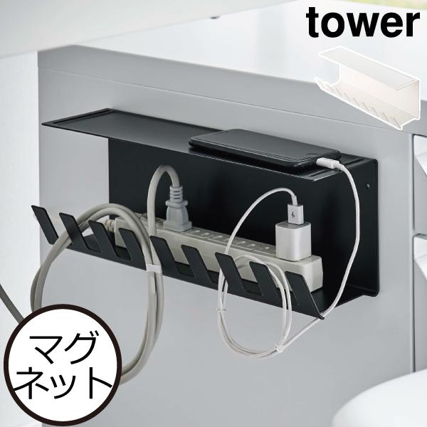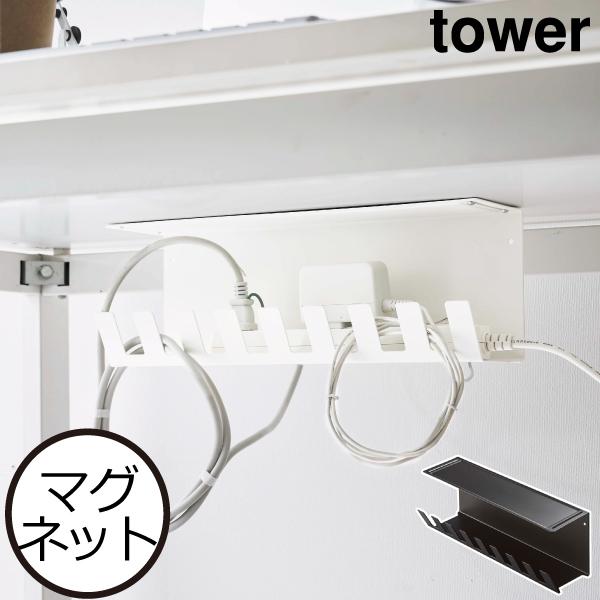 ケーブルラック おしゃれ 壁面収納雑貨 マグネット ケーブルボックス 配線受け タワーシリーズ 公式 山崎実業 デスク下電源タップ収納ラック タワー tower