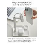 Apple社純正のMagSafe充電器をホルダー部にはめ込み、磁力で簡単にワンタッチでスマートフォンを取り付けて固定!充電しながら収納できるスマートフォンスタンドです。高さのあるスタンド式で画面が見やすく、スマートフォンを固定できるのでハンズフリーになり、長時間の動画視聴も快適。磁力でしっかり固定できるのでカメラもぶれず、オンライン会議などにも便利です。 スマートフォンは縦向き・横向きどちらでも設置可能。ホルダーの上部はカットされており、充電器の着脱もスムーズにできます。付属のシリコーン製保護カバーを使えば、充電器やスマートフォンの傷付きを防いでくれます。 スタンドの台座部分はトレーになっており、イヤホンなどの小物置きとして便利に使えます。支柱内に充電ケーブルを通して隠せるので、配線もすっきりと整理できます。