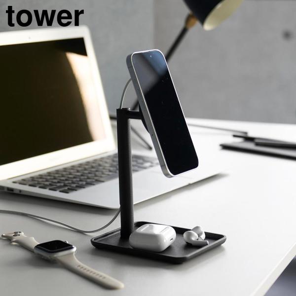 トレー付きスマートフォン充電スタンド タワー 山崎実業 tower ホワイト ブラック 10088 10089 スマホスタンド 充電スタンド 公式 yamazaki タワーシリーズ[MM1]