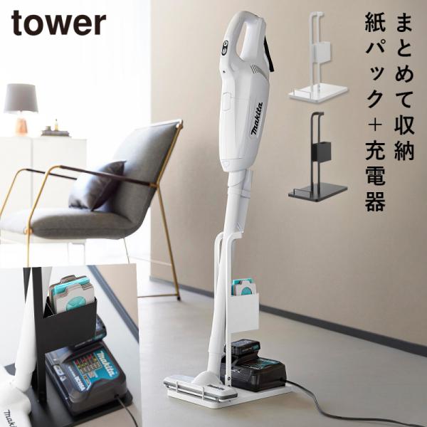 スティッククリーナー紙パック&充電器収納スタンド タワー 山崎実業 tower 掃除機スタンド クリーナースタンド コードレスクリーナー スタンド おしゃれ モノ