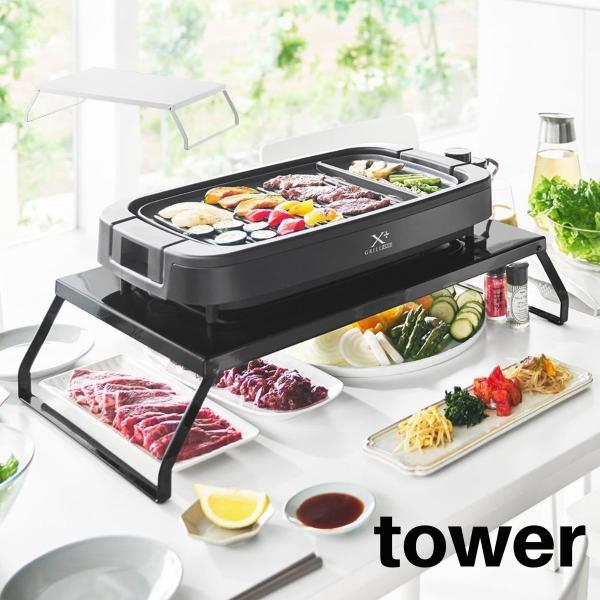下が使える電気プレートラック タワー 山崎実業 tower ホワイト ブラック 10403 10404 ホットプレート 焼肉 タワーシリーズ yamazaki