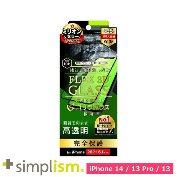 スマホフィルム フィルム iphone14/13Pro/13 トリニティ Simplism iPhone 14/13/13 Pro [FLEX 3D] ゴリラ 高透明 複合FRガラス BK スマホ フィルム