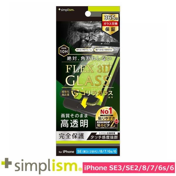 スマホフィルム フィルム iphoneSE3/SE2/8/7/6s/6 トリニティ Simplism iPhone SE(3/2)/8/7/6s/6F3Dゴリラガラス高透明複合Fガラスブラック スマホ フィルム