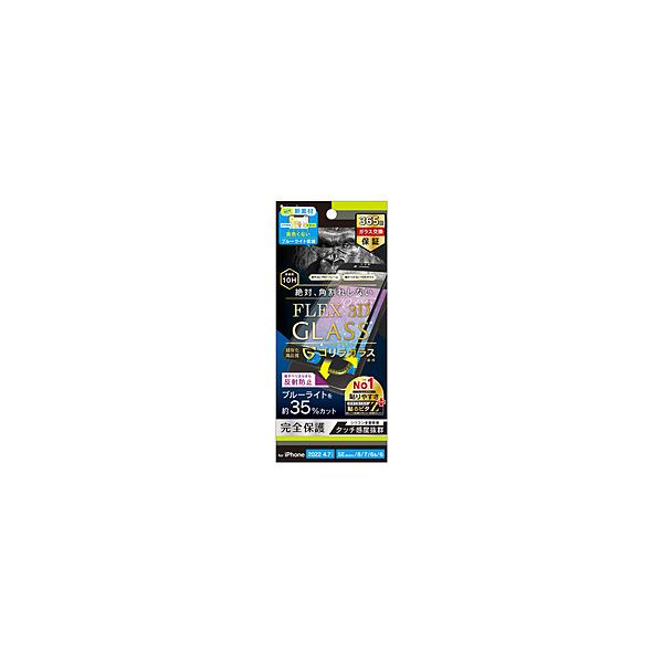 トリニティ iPhoneSE(第3・2世代)/8/7 [FLEX 3D] ゴリラガラス 黄色くならないブルーライト低減 複合ガラス ブラック 反射防止 TR-IP224-G3-GOB3ABK
