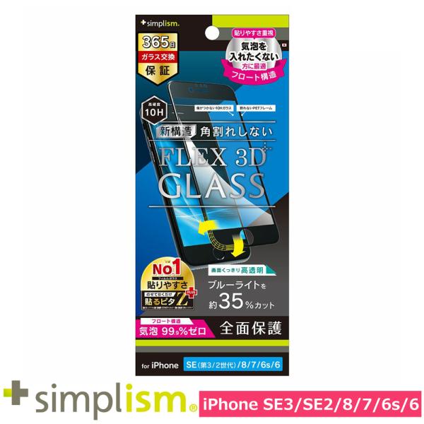スマホフィルム フィルム iphoneSE3/SE2/8/7/6s/6 トリニティ Simplism iPhone SE(3/2)/8/7/6s/6F3D黄色くならないBL複合Fガラスブラック スマホ フィルム