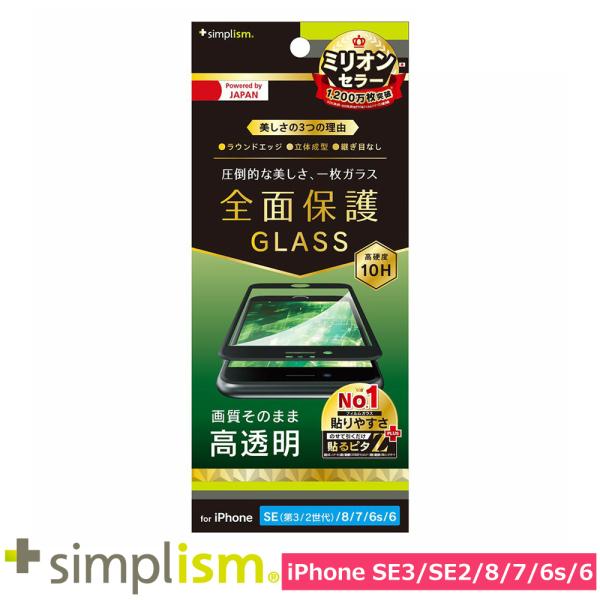 スマホフィルム フィルム iphoneSE3/SE2/8/7/6s/6 トリニティ Simplism iPhone SE(3/2)/8/7/6s/6 高透明 立体成型シームレスガラス ブラック スマホ フィルム