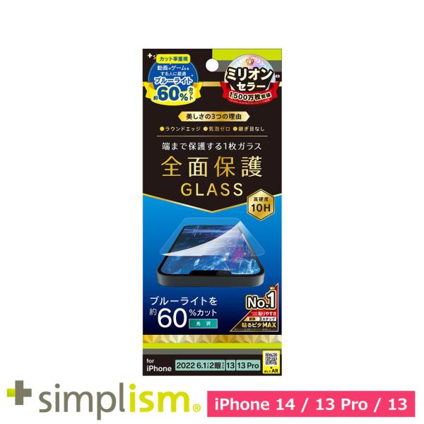 スマホフィルム フィルム iphone14/13Pro/13 トリニティ Simplism iPhone 14 / 13 / 13 Pro フルカバー 60%BL低減 強化ガラス 光沢 スマホ フィルム