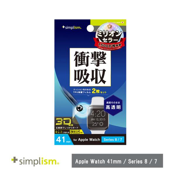 Simplism Apple Watch 41mm / Series 8 / 7 衝撃吸収 高透明 全画面保護フィルム 2枚セット
