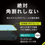 強化ガラスで画面を保護し、端末本体の形状に沿った立体成型の PET フレームが周りを覆うことで、角からの落下で起こる「角割れ」を防ぎます。