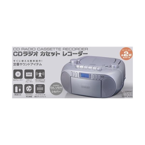- YAMADASELECT(ヤマダセレクト) YCDRC5G1S CDラジオカセットレコーダー シルバー発売日:2019年11月下旬● 2電源で便利(乾電池もOK)●ラジオ、CD、カセットテープを楽しむ●外部入力端子でスピーカーとしても使用可能【仕様】ラジオ受信周波数:FM:76〜108MHz(ワイドFM対応)、AM:522〜1620KHzCDプレーヤーチャンネル数:2チャンネルステレオCDプレーヤー対応ディスク:CD、CD-R、CD-RWCDプレーヤー対応フォーマット:CD-DACDプレーヤーのピックアップ:半導体レーザーサンプリング周波数:100Hz=-2.5dB、1kHz=-0dB、10kHz=0dBテープレコーダーのトラック方式:2トラック、2チャンネルステレオ方式テープレコーダーのバイアス方式:DC方式テープレコーダーの消去方式:マグネット消去早送り・巻戻し時間:早送り:約150秒、巻戻し:約150秒(C-60テープ使用)入出力端子:外部入力端子、イヤホン端子電源:AC:100V 50/60Hz、DC:9V(単2乾電池×6)消費電力:12Wスピーカー出力:1W+1W外形寸法:約 W235×D210×H122mm質量 :約1.46Kg(乾電池含まず)電源コード長:約1.4m付属品:電源コード、取扱説明書(保証書)