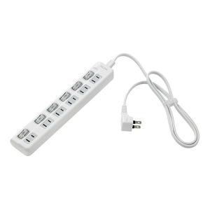 - 朝日電器 電源タップ 6個口タップ1.0m 個別スイッチ 上挿し WLS-LU61EB W(2529628)