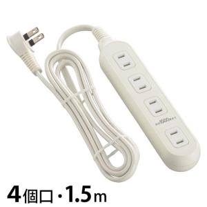 - OHM オーム電機 4個口スリムタップ コード長1.5m L型プラグ HS-T415W22 難燃 耐熱仕様 延長コード