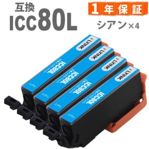 【互換品】 ICC80L シアン4本 増量版 プリンターインク IC80 互換インク EP-807AB EP-807AR EP-807AW EP-808AB EP-808AR EP-808AW EP-979A3 EP-982A3