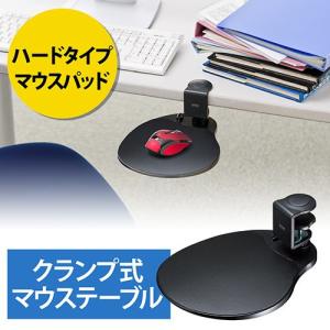 - マウステーブル デスク取付 クランプ式 360度回転 マウス置き場 ハードタイプマウスパッド ブラック EZ2-MPD021BK