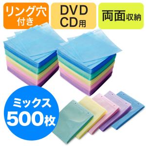 - 不織布ケース DVDケース CDケース 500枚セット 両面タイプ 2枚収納 スリム 薄型 ミックス リング穴付き DVD CD メディアケース 大容量 保管 200-FCD007MX-5