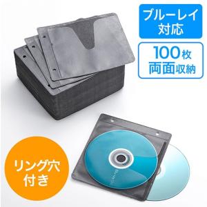 - ブルーレイディスク対応不織布ケース リング2穴 両面収納 100枚入 ブラック EZ2-FCD049BK