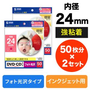 - インクジェットDVD・CDラベル 内径24mm フォト光沢 50シート×2セット (LB-CDR006N-50-2)
