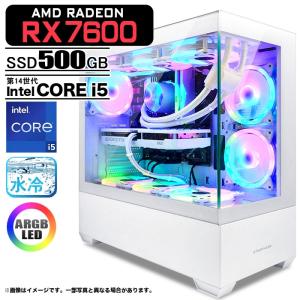 ゲーミングPC GP-V3 ホワイト ピラーレス AMD Radeon RX7600 第14世代 Intel Corei5 14400F Windows11 500GB 16GB CPU 水冷ファン eスポーツ PASOUL 極