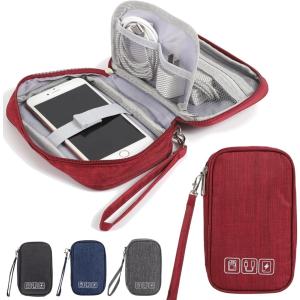 - ケーブル 収納 ポーチ バッテリー ガジェット マウス 充電器 USBメモリ 3層タイプ(レッド)