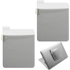 - ノートパソコン 背面 ポケット 2個セット シール スリーブ ケース ポーチ PC タブレット 収納(グレー)