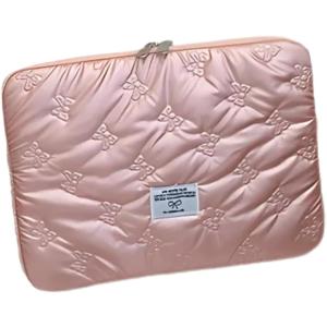 - パソコンケース 14インチ対応 ノートPC タブレット兼用 収納ケース 衝撃吸収 韓国風 リボン かわいい (ピンク, 14インチ)