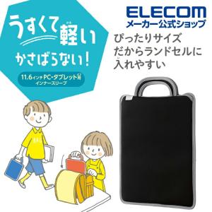 - エレコム インナースリーブ ハンドル付き インナースリーブ ノートパソコン ノートPC 伸縮素材 ランドセル に収納可能 スリップイン ブラック┃BM-IBSIV11BK