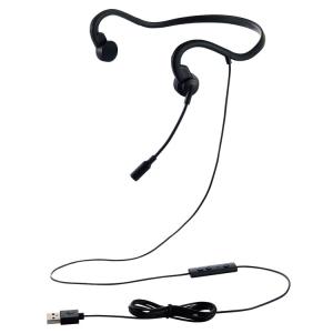 - ELECOM エレコム 骨伝導イヤホン 耳を塞がない ヘッドセット マイク付き 有線 USB A接続 ネックバンドタイプ 耳栓付属 両耳用 テレワーク Web会議 代引不可