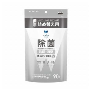 - エレコム ウェットティッシュ 除菌 消臭 クリーナー 詰替 90枚入り 銀イオン 緑茶エキス 配合 アルコール入り WC-AG90SPN 代引不可