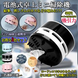 - 掃除機 3色3個セット 卓上クリーナー 卓上そうじ機 ミニ掃除機 電池式 消しゴムかす コンピュータキーボード ゴミやホコリ 食べこぼし 送料無料