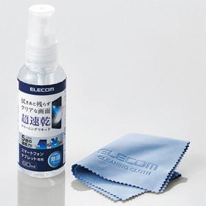 - ELECOM 超速乾クリーニングリキッド スマートフォン・タブレット専用 除菌タイプ 内容量60ml クリーニングクロス付 P-CKST60SET