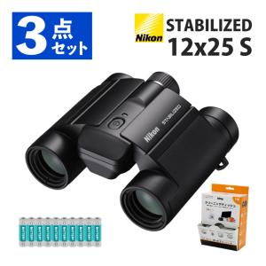 - ニコン 双眼鏡 防振双眼鏡 コンパクト 手ブレ補正 STABILIZED 12x25 S 電池付 3点セット
