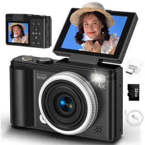 Color:ブラック デジカメ 4K デジタルカメラ 6400万画素 180度回転可能ディスプレイ 自撮り 16倍デジタルズーム オートフォーカス機能 スマイル検出 連続撮影 2.