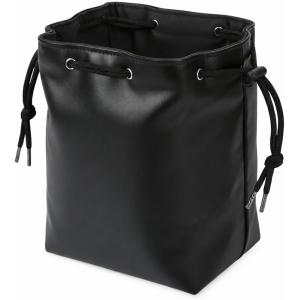 - カメラポーチ 巾着 コンデジケース おしゃれ デジカメ 大人可愛い カラー 撥水 レザー 一眼レフ ミラーレス (ブラック, Lサイズ)