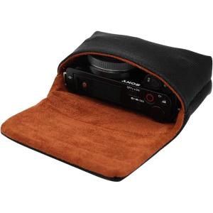 - カメラバッグ カメラケース カメラポーチ 軽量 巾着 小型 インナーバッグ 裏地 フリース 一眼レフ レザー (ブラック, S)