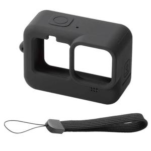 - エレコム GoPro HERO9 Black用 シリコンケース ハンドストラップ付き アクションカメラ ゴープロ9 ブラック ELECOM