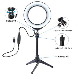 - コンビニ受取可 LEDリングライト 20cmタイプ FUGU 動画撮影 自撮り用 FG-SELFL03-BK