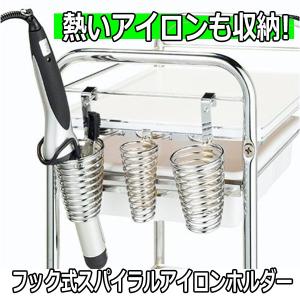 - フック式 スパイラルアイロンホルダー 美容院・理容室のワゴン、セット台のサイドにおすすめ ヘアアイロン収納 コテ/カールアイロン/ドライヤー