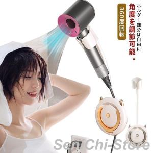 - ドライヤーホルダー 壁掛け ドライヤースタンド ハンズフリー 取付簡単 360度回転 ヘアドライヤー 洗面台 洗面所 多機能 壁掛け式 穴開け不要 ヘ