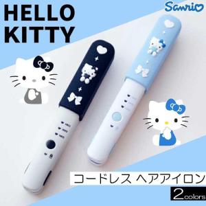 - サンリオ ハローキティ コードレス ヘアアイロン W33×D44×H211mm さんりお ストレートアイロン カール 充電コードつき ミニ ストレート
