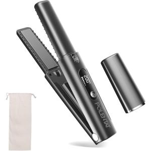 - 電池着脱式 最新改良型 ヘアアイロン コードレス 機内持ち込み可 USB充電式 コードレスヘアアイロン ミニ 2way (ブラック)