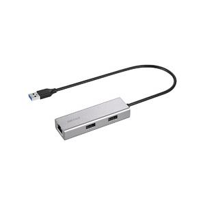 - LUD-U3-AU101SV Giga対応 USB-A LANアダプターハブ付 シルバー 取り寄せ商品