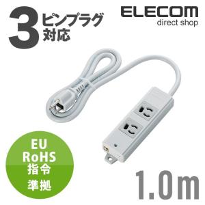 エレコム EU RoHs指令準拠 二重構造工事用 電源タップ 延長コード コンセント タップ 抜け止め 3P 2個口 3Pプラグ マグネット グレー 1.0m┃T-WRM3210LG/RS
